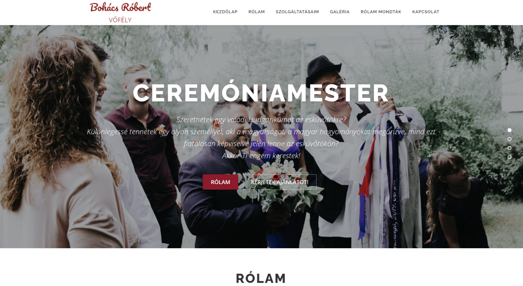 A weboldalt vőfély szolgáltatások bemutatására készítettük, ahol az érzelmek közvetítése kiemelt szerepet kapott, emellett a számos galéria, videó és a jogi megfelelés biztosítása is fő szempont volt.