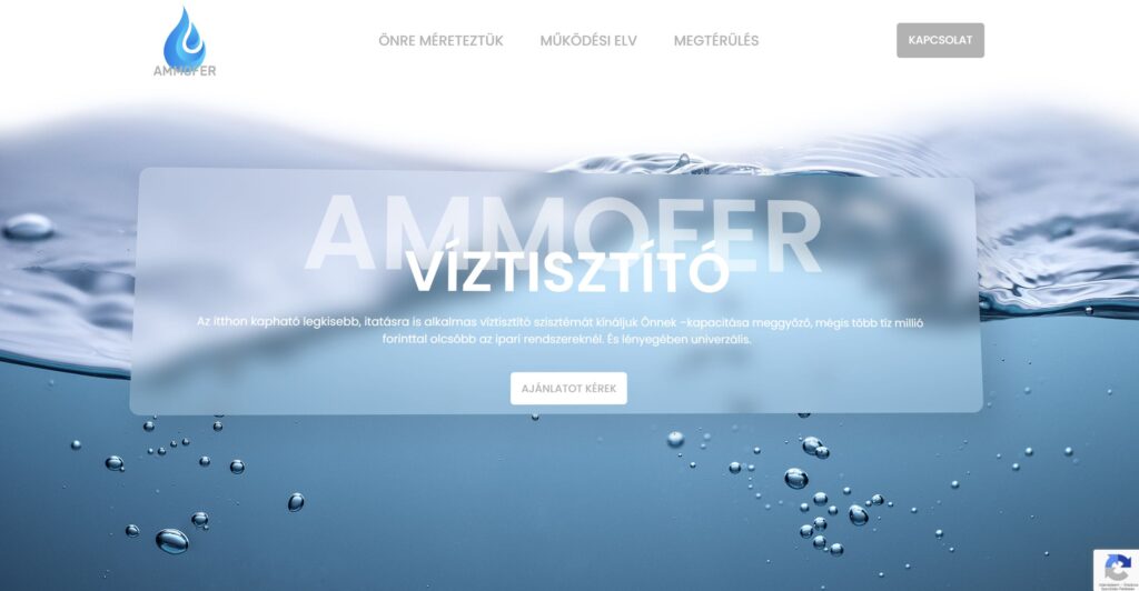 Az Ammofer.hu egy professzionálisan fejlesztett weboldal, amely egyedi víztisztító rendszerek értékesítésére és bemutatására szolgál, a felhasználói élmény és funkciók maximális figyelembevételével kialakítva